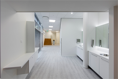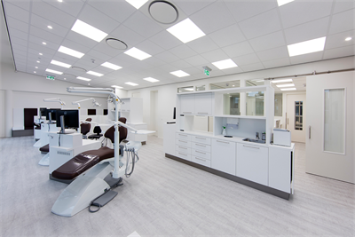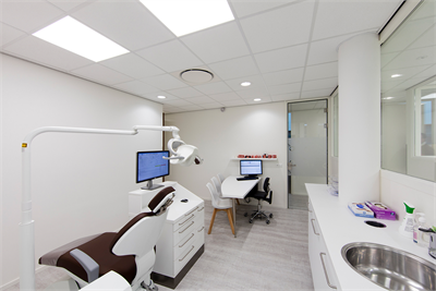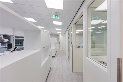 Voordat het zover was, zijn we lang op zoek geweest naar een geschikt pand, toch wel een jaar of twee. Maar dit pand ligt lekker centraal en is goed bereikbaar. Het is ook qua vierkante meters geschikt en het is een speelse ruimte. Voor de inrichting kwamen via collega’s Dentalair en Dentalbouw in beeld. We kenden een voorbeeld van een praktijk die all-in werd gebouwd. Het sprak ons aan dat je op die manier alles kunt overlaten aan een gespecialiseerd team en wij ons met onze eigen werkzaamheden kunnen bezighouden.’
